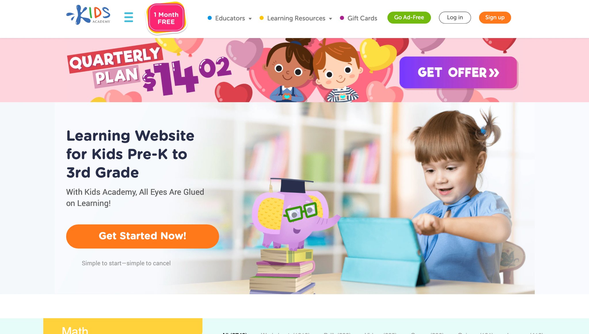 Kids Academy offers structured lessons in math, reading, and science with videos and games for preschool to early grades. It features traceable worksheets and counting exercises with rewards. Strengths include weekly updates and comprehensive coverage of core skills.