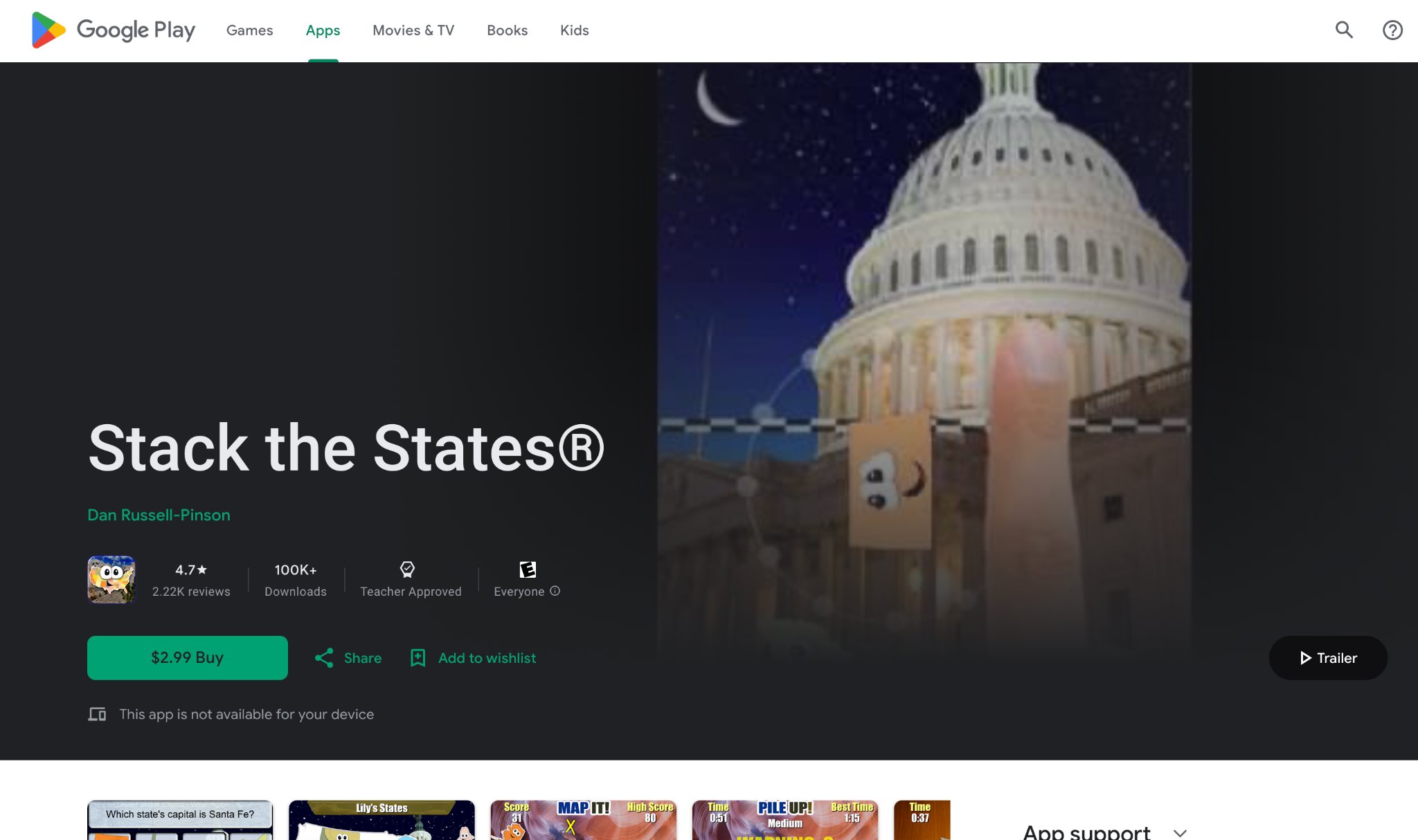 Stack the States teaches U.S. geography by stacking shapes, learning capitals and flags. Strengths make facts memorable through physics. Weaknesses focus solely on states. From USA, it's for social studies. Kids unlock bonuses by winning levels. It reinforces locations interactively.
