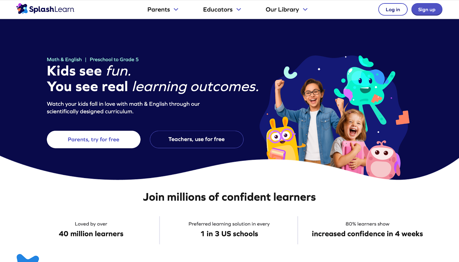 SplashLearn engages children in math and reading through immersive games and stories set in a vibrant Splashverse world, targeting kids from pre-K to grade 5. It offers thousands of activities that align with common core standards, personalizing content to match each child's pace without timed pressures. Strengths include its focus on building confidence through rewards and progress tracking, helping kids master concepts like addition, phonics, and comprehension in a fun way. Some find it requires regular sessions to see full benefits, as sporadic use might not reinforce skills as deeply. The app includes printable worksheets and parent dashboards for monitoring growth. Headquarters in Gurgaon, India.