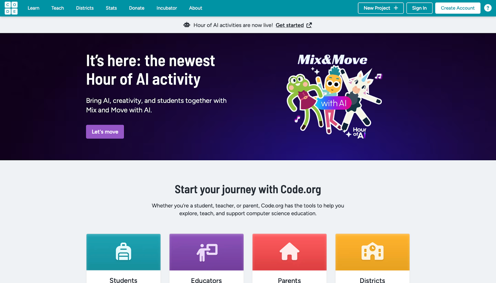 Code.org Games, created by the nonprofit Code.org based in Seattle, Washington, introduces coding fundamentals through accessible puzzles featuring popular characters from games like Angry Birds or Minecraft. Aimed at all ages but especially beginners, kids drag and drop blocks to solve challenges, progressing from basic sequences to loops and conditionals. Strengths lie in its free access and no-prior-knowledge requirement, making computer science approachable for diverse learners. The step-by-step guidance builds confidence, with instant feedback on errors. However, advanced users might find early levels too simplistic, and it primarily focuses on logic rather than broad subjects. Still, it's excellent for sparking interest in tech careers early.